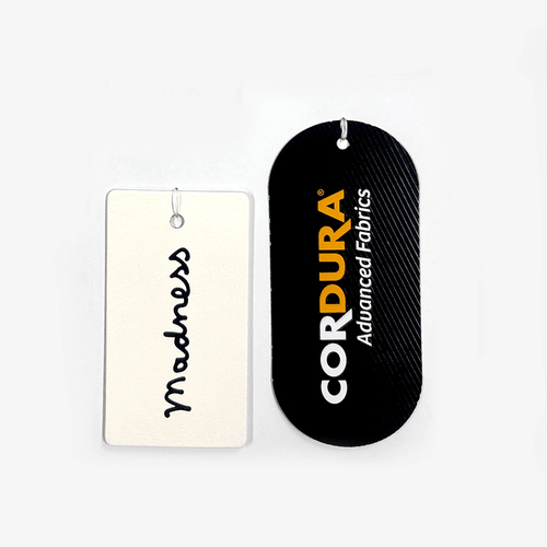 2.① Customizable (shapes, prints, materials: kraft/glossy paper); ② Can include QR codes, care instructions, or prices; ③ Lightweight & cost-effective; ④ Eco-friendly options (recyclable paper)