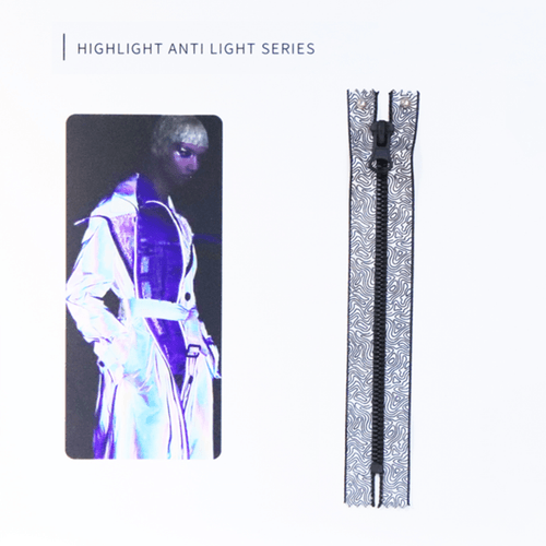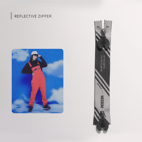 1.Functional zippers integrated with reflective elements, blending visibility enhancement and decorative appeal for garments and gear.