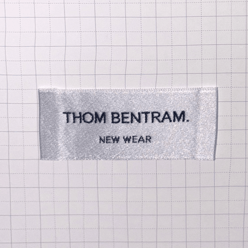 2. Slender design (fits side seams), fine weaving (detailed text), durable (resists wear), and non-intrusive to product (fit).